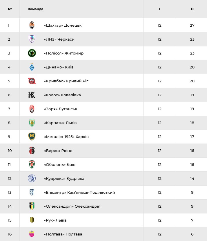 Турнірна ситуація перед 13-им туром УПЛ: